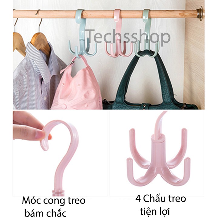 Móc với 4 chấu treo cao đa năng tiện lợi, có thể treo nhiều loại khác nhau như cà vạt, mũ , túi xách, quần áo, hoặc treo giày dép