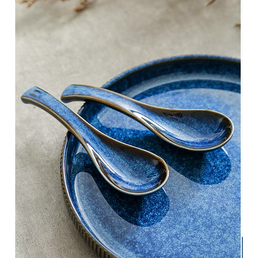 Nhà cửa & Đời sống > Bộ đồ bàn ăn > Bộ dao kéo || (SẴN) Muôi canh, thìa sứ men xanh lam sang trọng Sea - Muỗng sứ cao cấp phong cách Bắc ÂuCòn hàng
