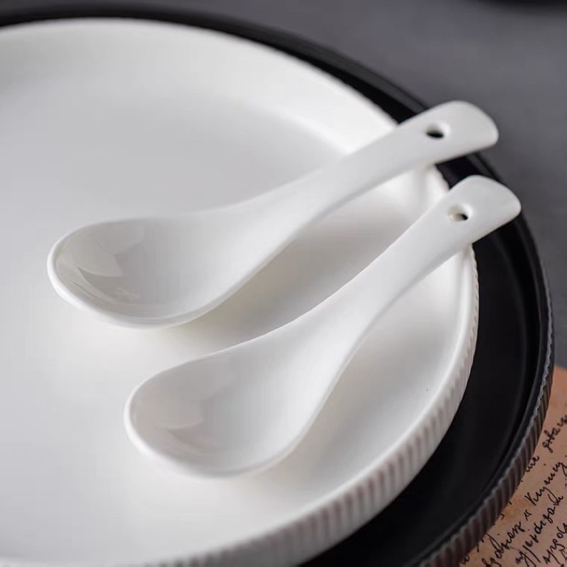 Nhà cửa & Đời sống > Bộ đồ bàn ăn > Bộ dao kéo || (SẴN) Muôi canh, thìa sứ trắng Cruise sang trọng - Vá muỗng sứ cao cấp phong cách Bắc ÂuCòn hàng