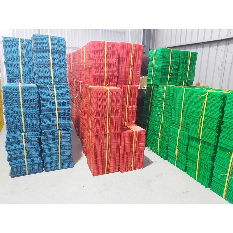 Mô tả: nhựa nhẹ, bền, thích hợp làm kệ pallet để hàng, làm sàn chuồng chó mèo, sàn rửa xe cho các gara, lót sân vườn, nhà tắm chống trơn trượt