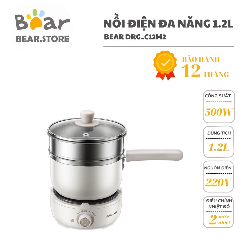Giới thiệu [SẴN] Nồi Lẩu Mini Đa Năng, Khay Hấp Đa Năng BEAR DRG-C12M2(1.2L) Và DRG-B25Z1(2.5L) - BẢO HÀNH 12 THÁNG
