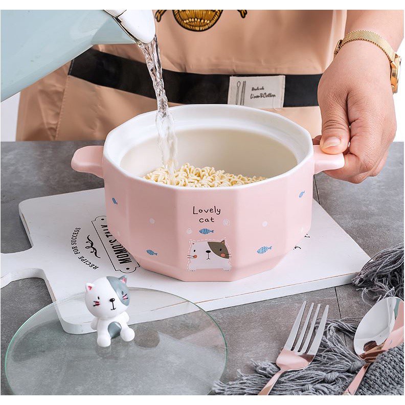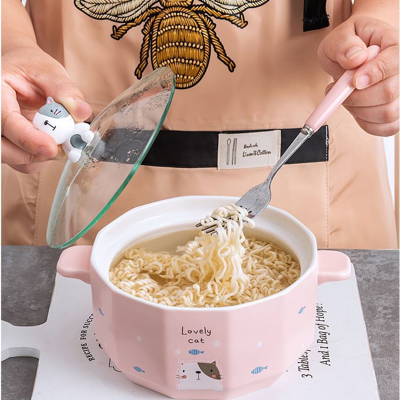 [Có sẵn] Nồi Sứ up mỳ Tô sứ ăn mỳ kèm nắp thủy tinh hình gấu dễ thương