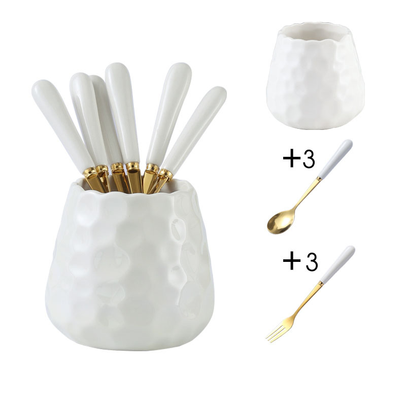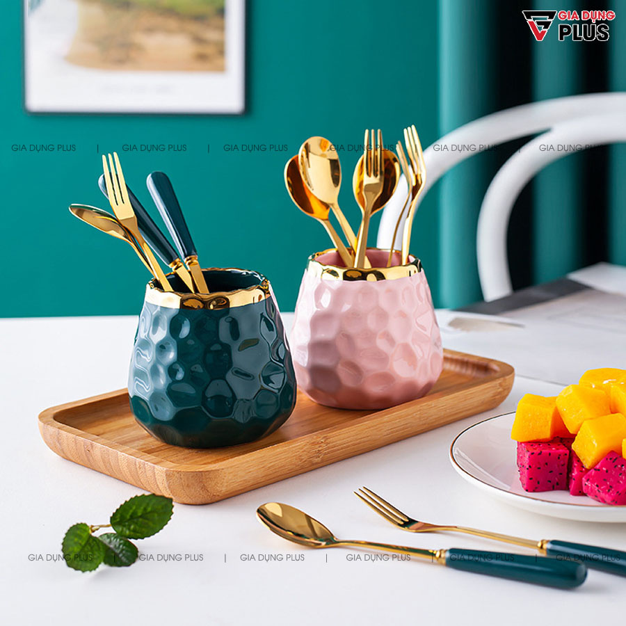 [ Có Sẵn ] Ống Đựng Muỗng Nĩa Bằng Sứ Xinh Sắn Kèm Muỗng Nĩa Đồng Bộ Màu Tay Cầm Sứ (4 Màu) | Gia Dụng Plus
