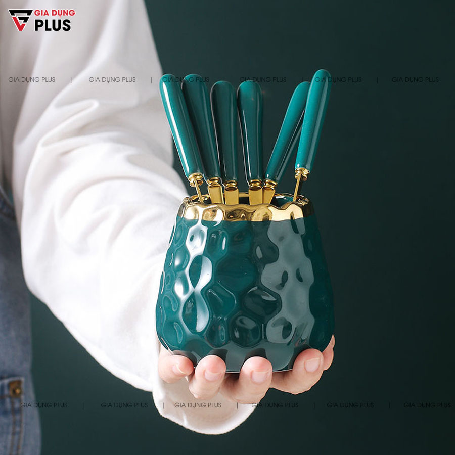 Giới thiệu [ Có Sẵn ] Ống Đựng Muỗng Nĩa Bằng Sứ Xinh Sắn Kèm Muỗng Nĩa Đồng Bộ Màu Tay Cầm Sứ (4 Màu) | Gia Dụng Plus