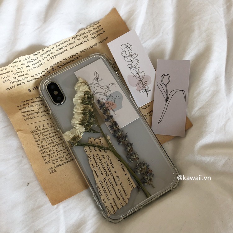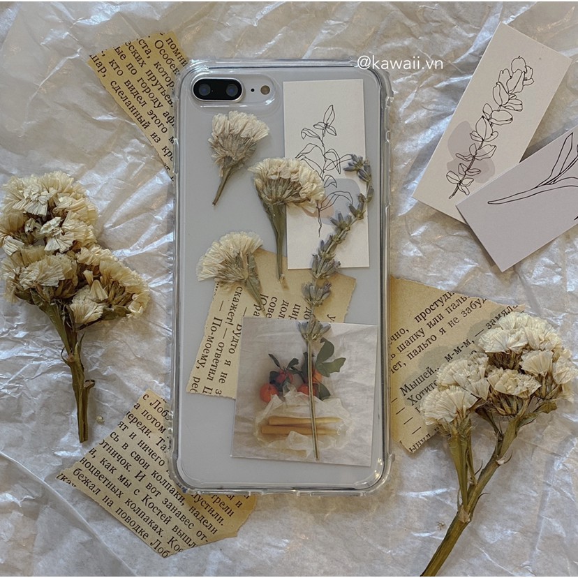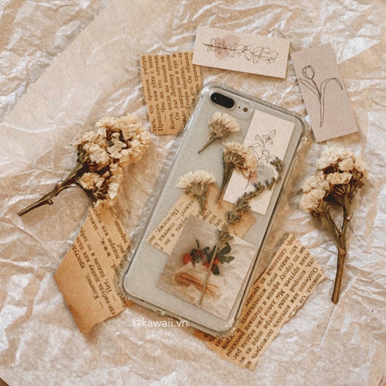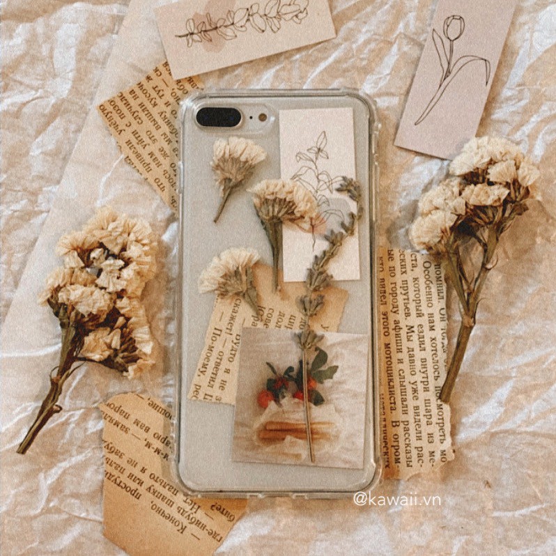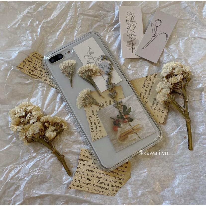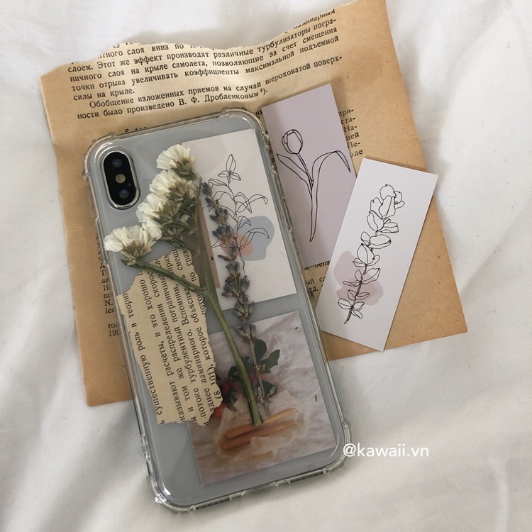 ❣︎ Bộ sản phẩm bao gồm: Ốp lưng chống sốc trong suốt cực dày dặn + vài mẩu hoa thật được ép khô + vài mẩu giấy Kraft xé nhỏ thật vintage + vài tấm postcard in hình xinh xắn.