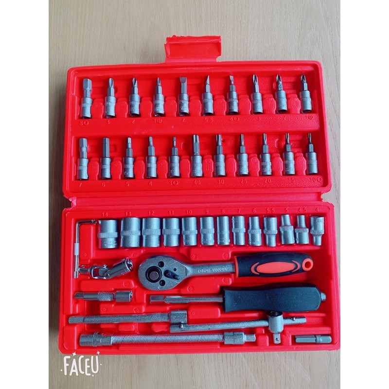 Nhà cửa & Đời sống > Dụng cụ & Thiết bị tiện ích > Dụng cụ > Khác || Bộ sản phẩm 46 chi tiết dung cụ mở bu lông ốc vít sửa chữa ô tô xe máy đa năng kích thước 25x15x5cmCòn hàng