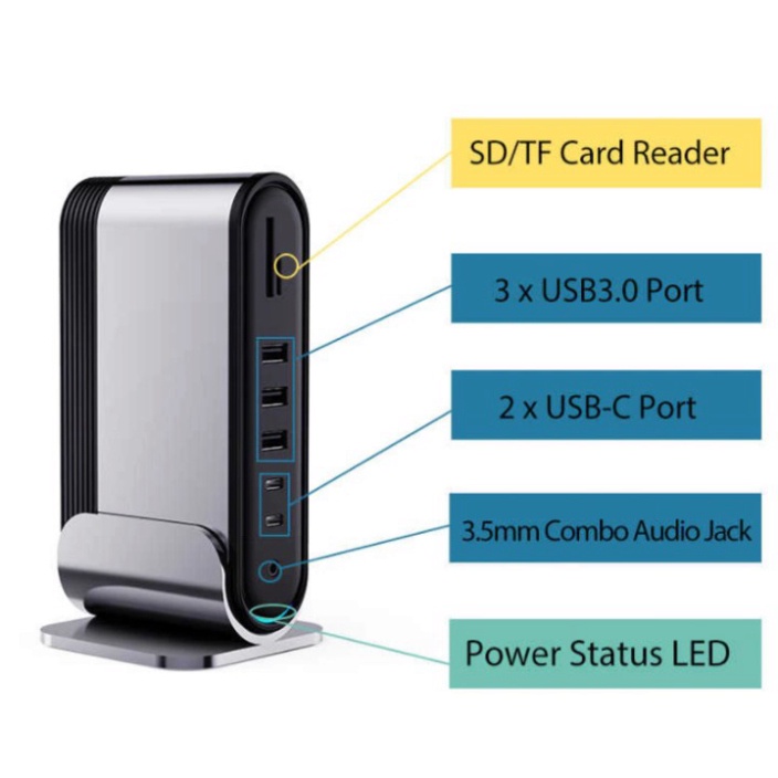 - Giao diện: Loại-CPD (đầu vào) + Loại-C (đầu ra) + USB2.0 * 2 + VGA * 1 + 4K HD * 1 + - Bộ nguồn DC * 1 + RJ45 * 1 + SD + TF * 1 + USB 3.0 * 3+