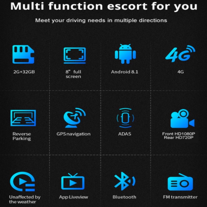 * dual cams recording (front is AHD1080P, rear is AHD720P)