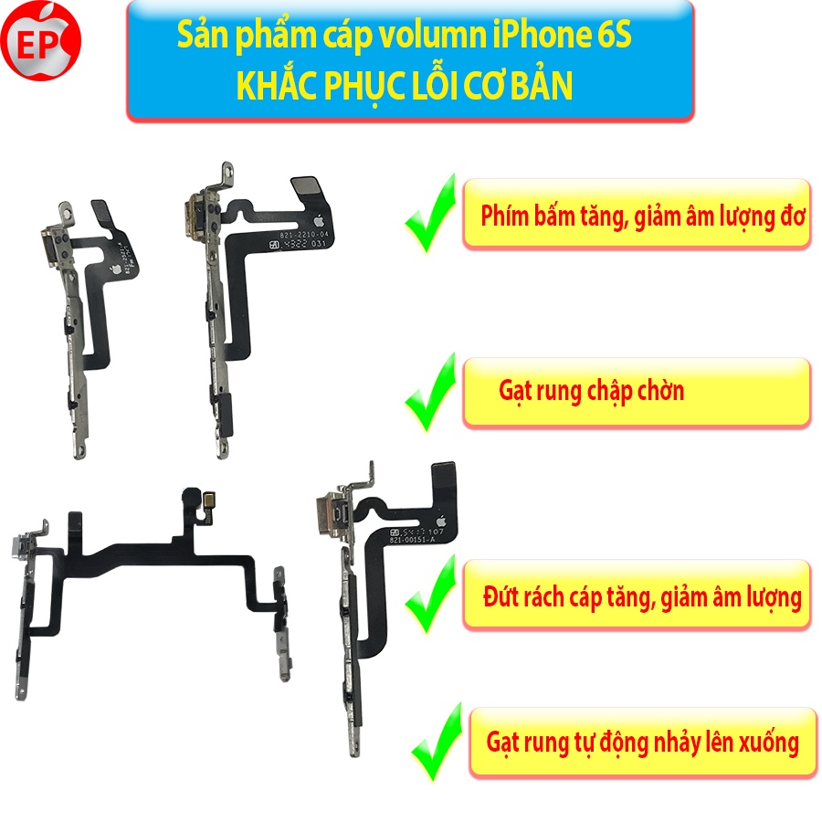 Sản phẩm cáp tăng giảm âm lượng, gạt rung iPhone 6, 6 Plus, 6S Plus ZIN BÓC MÁY.Khắc phục lỗi cơ bản sau: