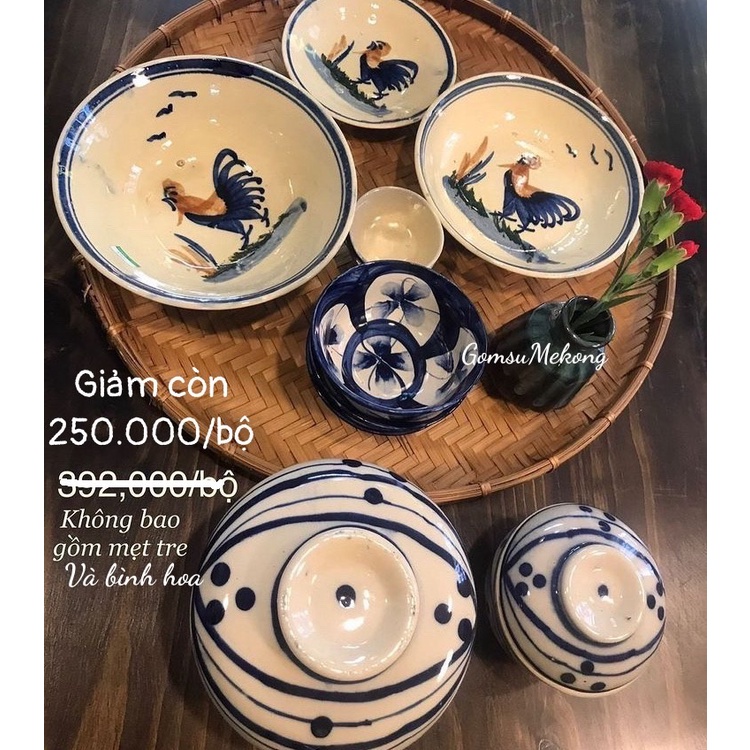 Bộ sản phẩm chén bát con gà trống gốm sứ Nam BộBộ sản phẩm bao gồm