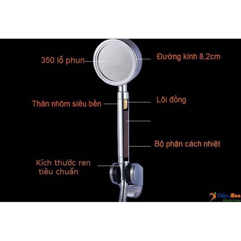 💎 Chất liệu: Vòi sen được làm từ hợp kim nhôm giúp tay sen siêu bền - chịu nhiệt cao không bị biến dạng.