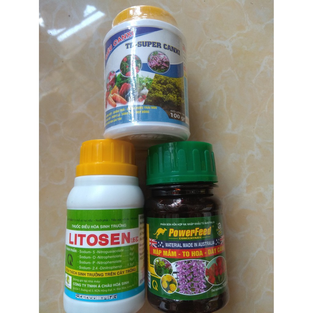 Bộ sản phẩm dưỡng cây chăm sóc hoa lan (power feed+super Canxi+Litosen ) - 100ml/chai