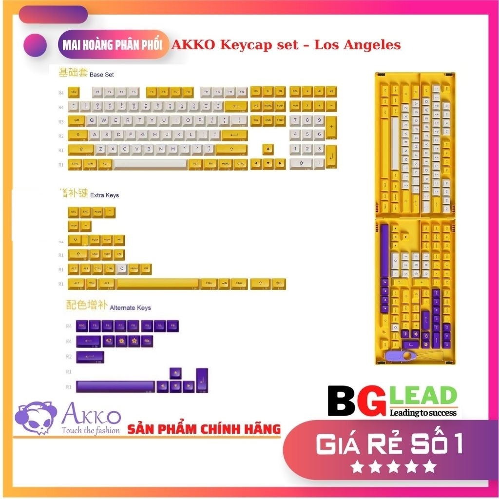 ✪ Thông tin sản phẩm: Bộ keycap cho bàn phím cơ AKKO|Keycap set – Los Angeles (PBT Double-Shot/ASA profile/158 nút)