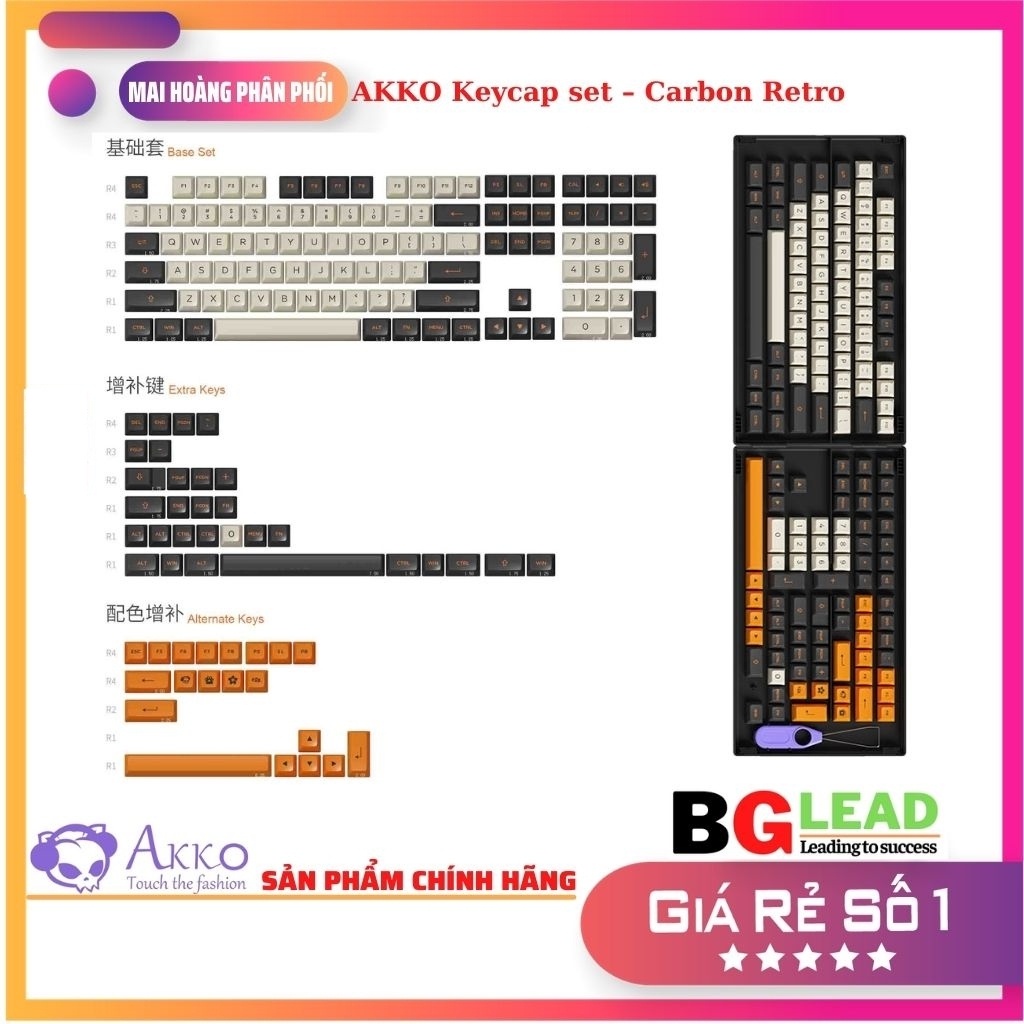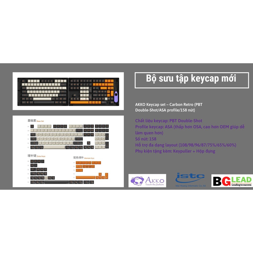 ✪ Thông tin sản phẩm: Bộ keycap cho bàn phím cơ AKKO|Keycap set – Carbon Retro (PBT Double-Shot/ASA profile/158 nút)