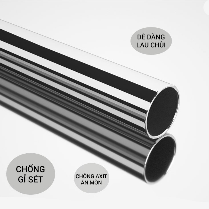 1. Chất liệu inox 304 cao cấp thêm sơn trắng tinh tế, ưa nhìn, chống han gỉ, dễ lau chùi, chống khuẩn tuyệt đối