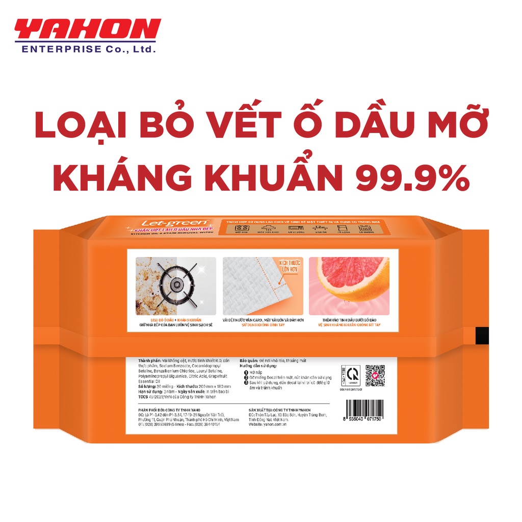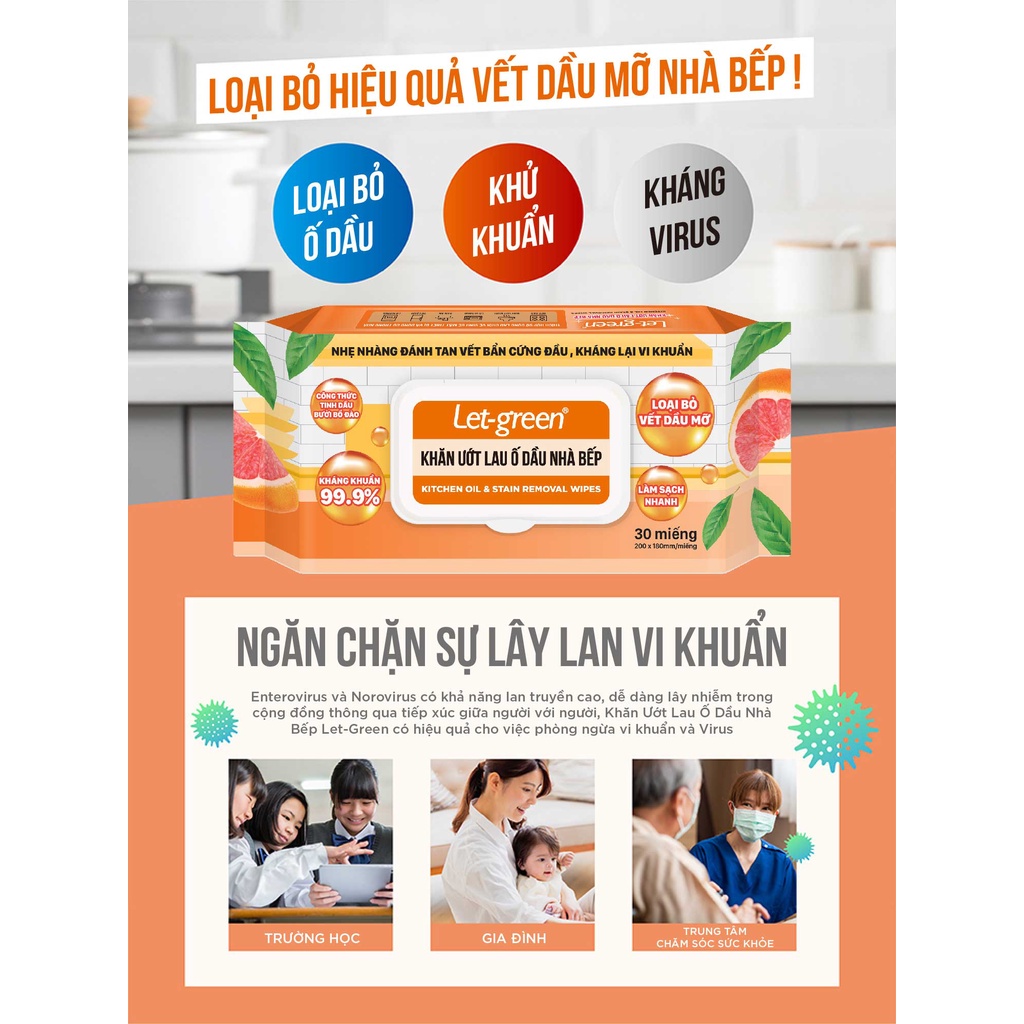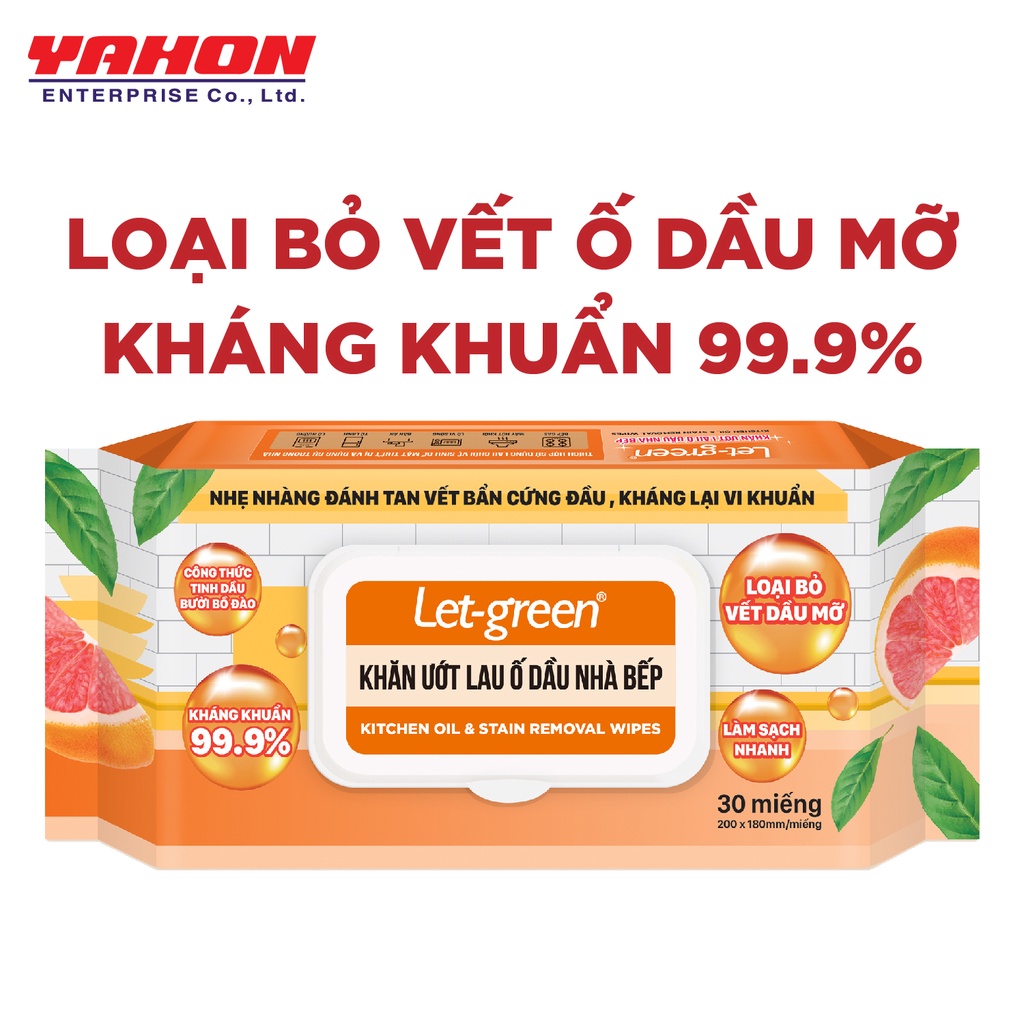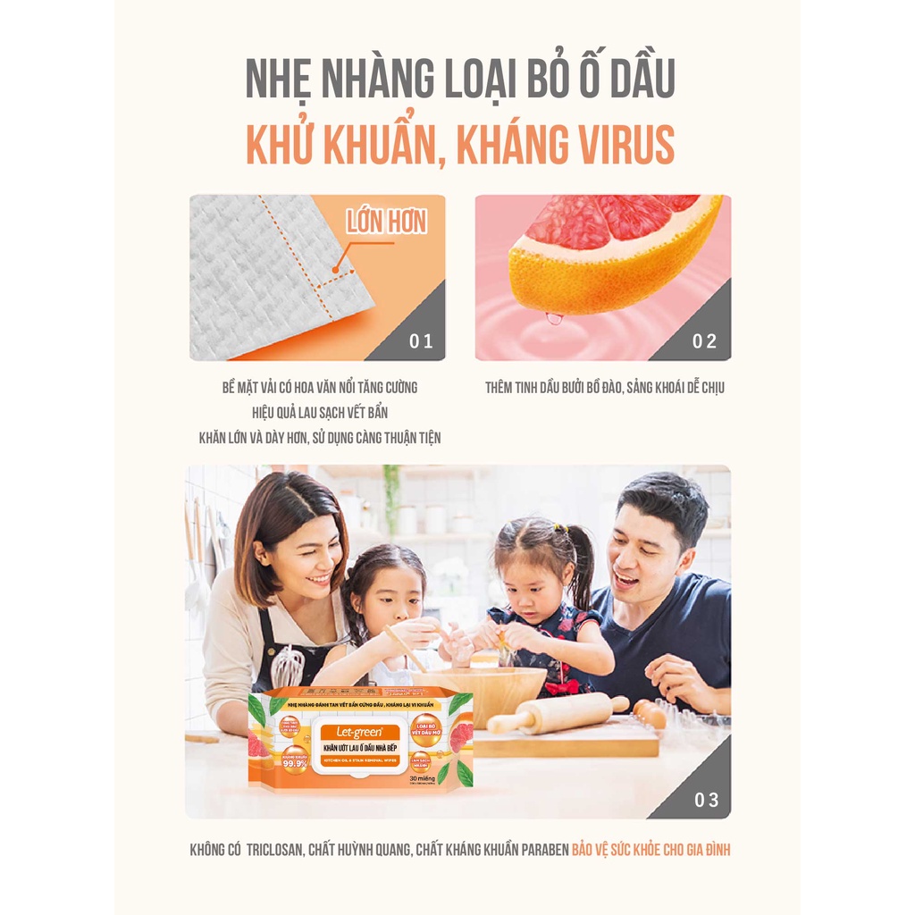 {SẢN PHẨM MỚI} KHĂN ƯỚT LAU Ố DẦU NHÀ BẾP LET-GREEN 30 MIẾNG