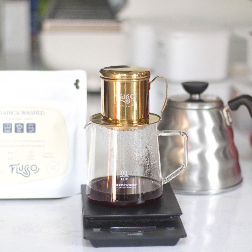 Giới thiệu SẢN PHẨM MỚI - Phin Pha Cà Phê Inox 304 Mạ Vàng Flusso Specialty Coffee