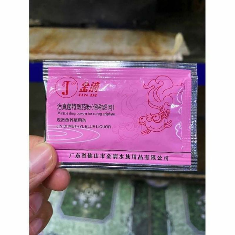 Jindi Trắng có tác dụng Ngăn Ngừa nấm Trắng,dạng nhẹ. Dạng bột, pha với liều lượng 1 gói cho 300l nước.