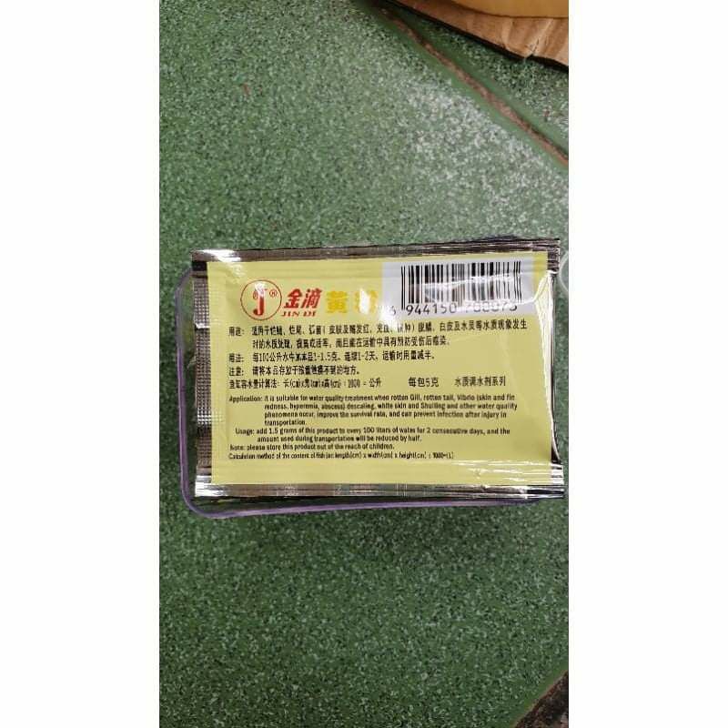 Jindi vàng có tác dụng giải độc và sát khuẩn, ngừa nấm. Dạng bột, pha với liều lượng 1 gói cho 300l nước.