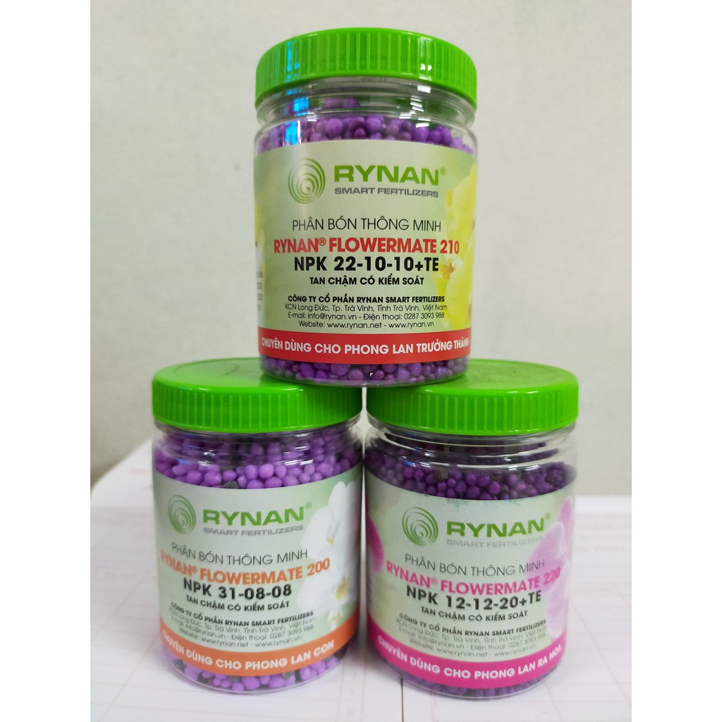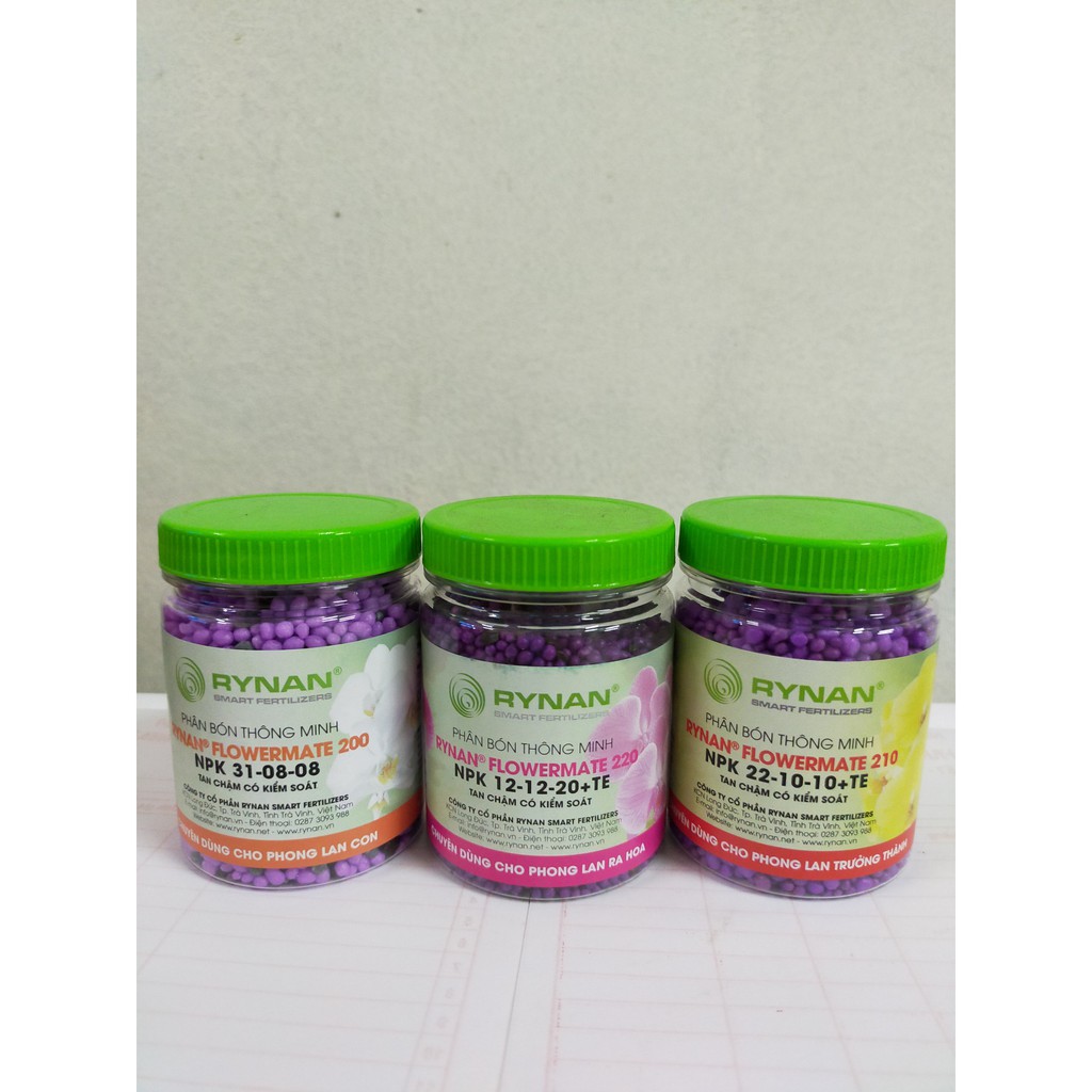- FLOWERMATE 220 (NPK 12-12-20+TE): Chuyên dùng cho phong lan ra hoa lên đến 120 ngày.