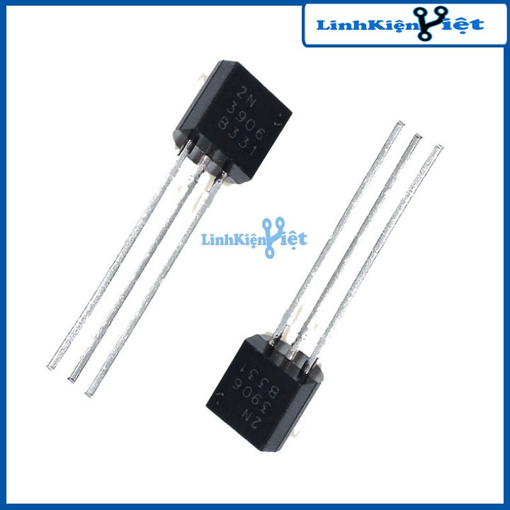 Transistor PNP 2N3906 0.2A-40VTransistor 2N3906 có cấu tạo gồm 3 lớp bán dẫn ghép với nhau thành 2 mối nối P-N, thuộc loại transistor thuận PNP. Transistor 2N3906 được sản xuất theo chuẩn TO92, thứ tự các chân từ trái qua phải: E B C.