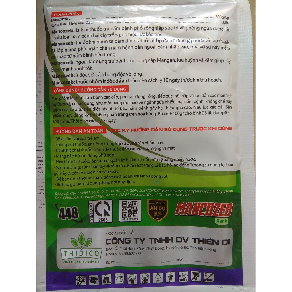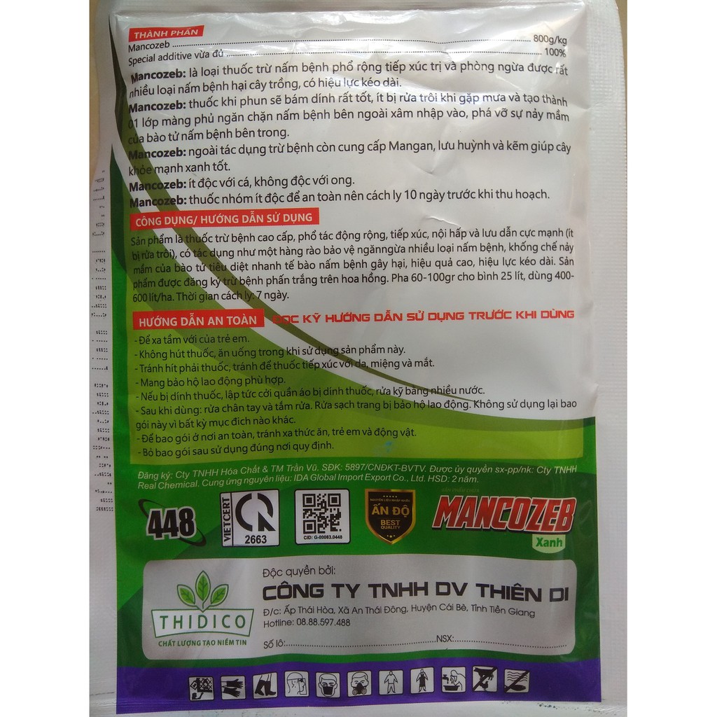 Sản phẩm trừ nấm bệnh TVZEB 800WP có chứa MANCOZEB Xanh - gói 100 gramThành phần :