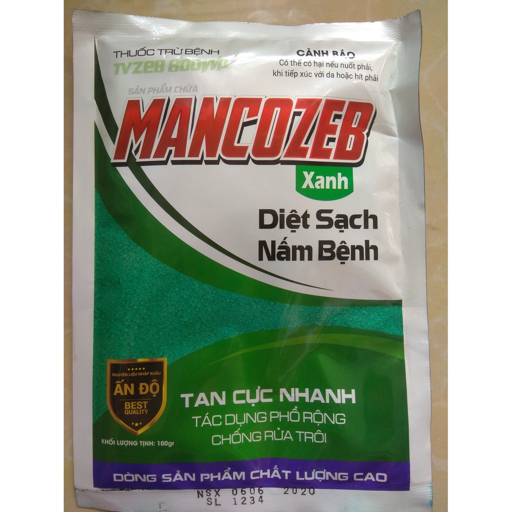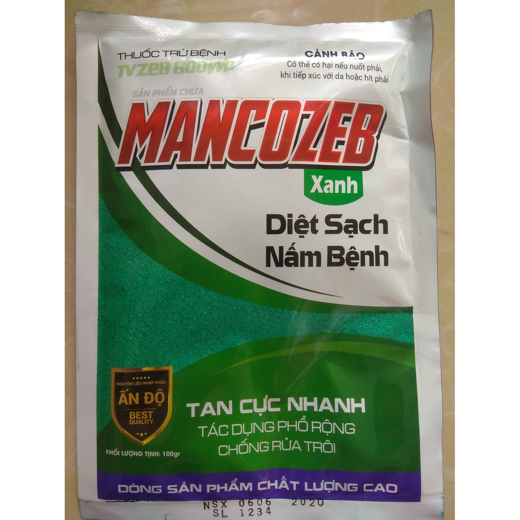 Nhà cửa & Đời sống > Làm vườn > Trang trí vườn || Sản phẩm trừ nấm bệnh TVZEB 800WP có chứa MANCOZEB Xanh - gói 100 gramCòn hàng