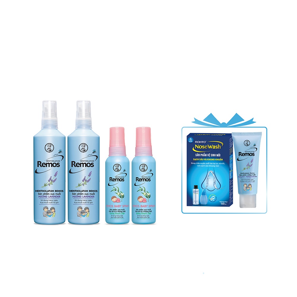 Sức Khỏe > Chăm sóc cá nhân > Chống muỗi & xua đuổi côn trùng || Bộ sản phẩm xua muỗi Remos cho gia đình + quà tặng:Bộ vệ sinh mũi Rohto miniset &kem chống muỗi Remos hương Lavender 70gCòn hàng