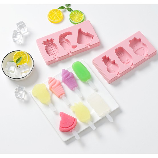 Giới thiệu SẴN - RẺ - Khuôn silicon làm kem kẹo dẻo tự nhiên kèm nắp đậy + que