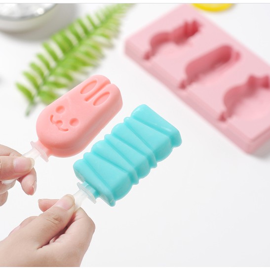 SẴN - RẺ - Khuôn silicon làm kem kẹo dẻo tự nhiên kèm nắp đậy + que