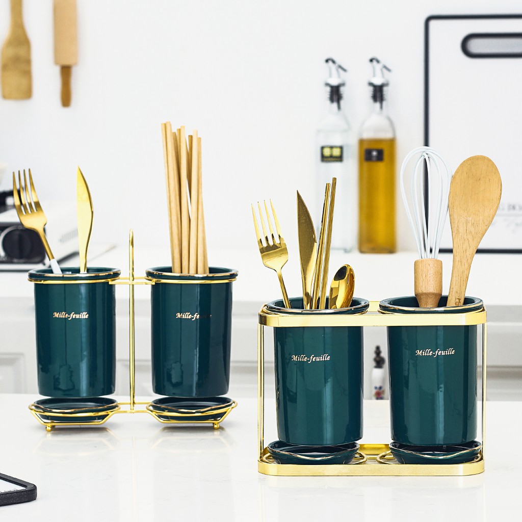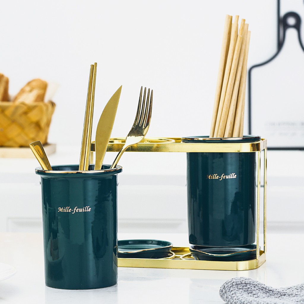 Nhà cửa & Đời sống > Bộ đồ bàn ăn > Bộ dao kéo || (SẴN) Set 2 ống đũa sứ xanh viền mạ vàng thật - Sứ cao cấp không chì, hàng xuất ÂuCòn hàng