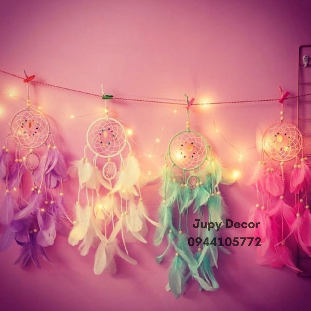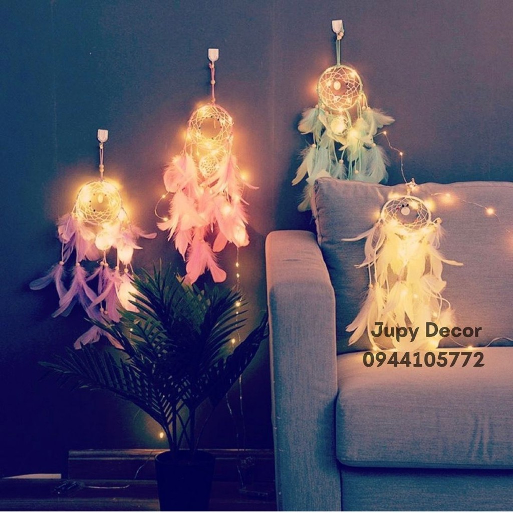💥💥 Dreamcatcher đính lông vũ có kèm đèn Led là một món phụ kiện trang trí xinh xắn giúp ngôi nhà bạn trở nên đầy màu sắc vào ban ngày và lung linh ảo diệu vào ban đêm 🙂