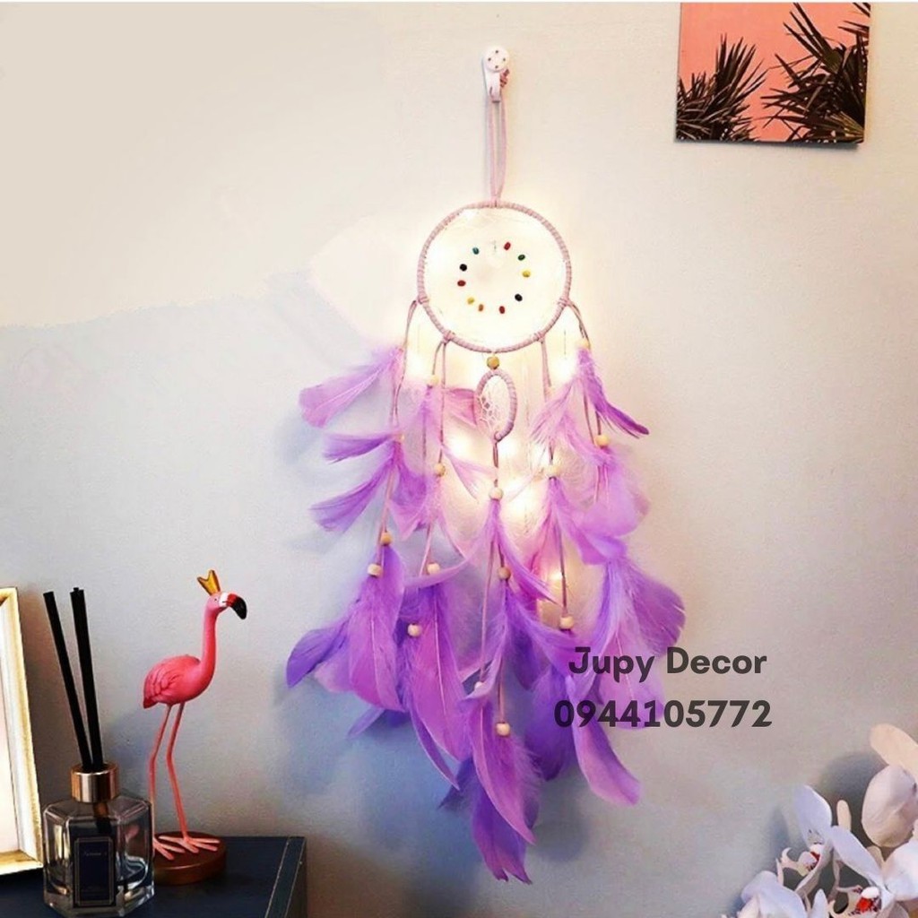 💥💥 Dreamcatcher đính lông vũ có kèm đèn Led là một món phụ kiện trang trí xinh xắn giúp ngôi nhà bạn trở nên đầy màu sắc vào ban ngày và lung linh ảo diệu vào ban đêm 🙂