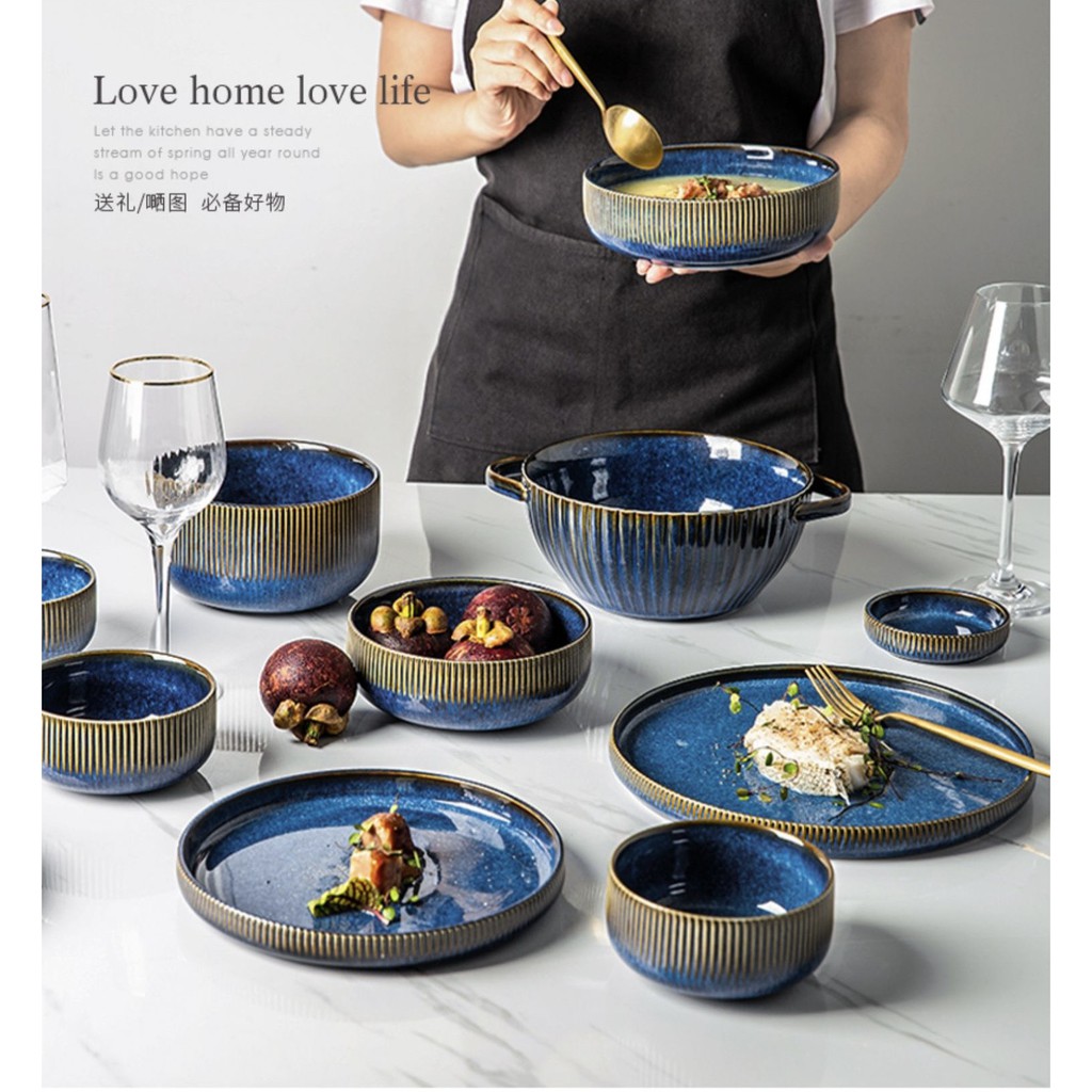 Nhà cửa & Đời sống > Bộ đồ bàn ăn > Tô || (SẴN) Tô mì sứ men xanh lam Sea sang trọng 15cm - Tô canh, Tô sứ cao cấp phong cách Bắc ÂuCòn hàng