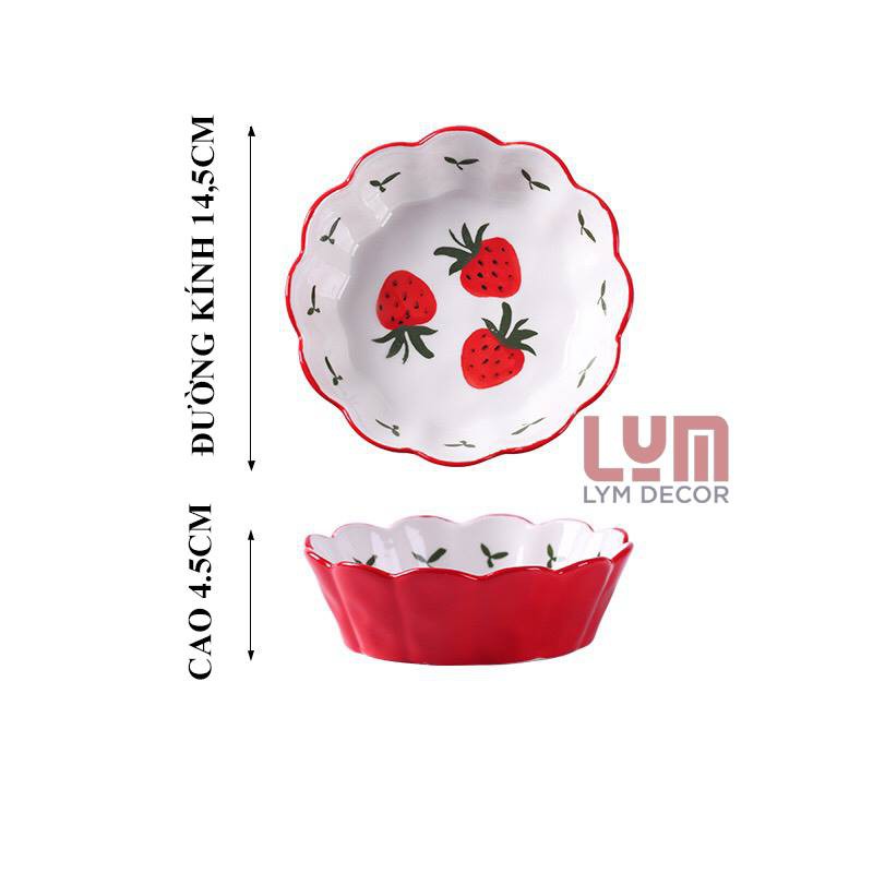 Giới thiệu (SẴN) Tô salad Dâu tây Size 14.5cm,hàng sứ vẽ tay cao cấp k chì
