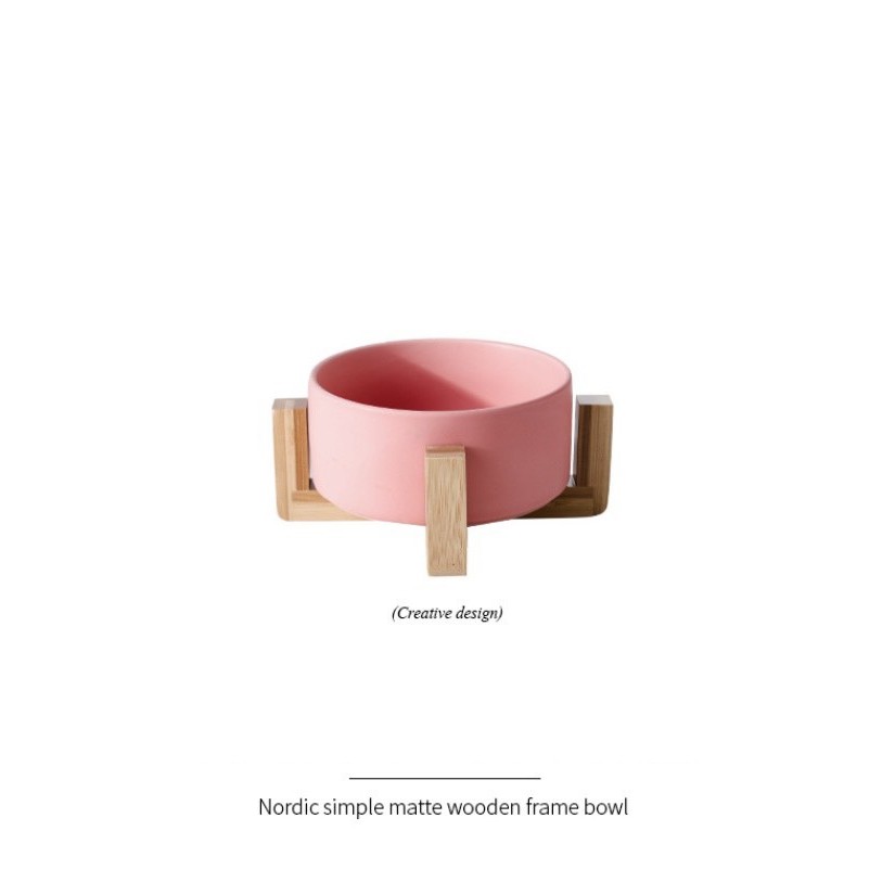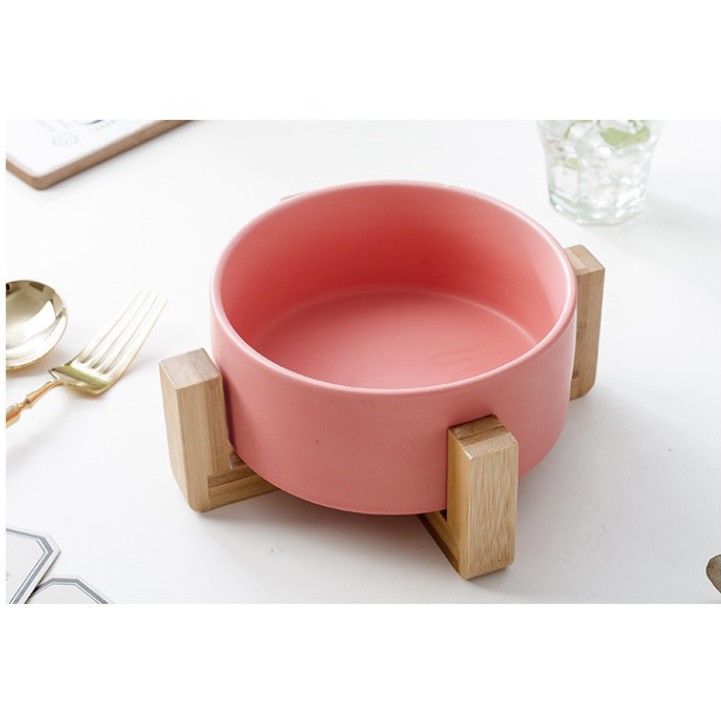(SẴN) Tô sứ kèm kệ gỗ chống nóng, tô salad sứ màu pastel phong cách Bắc Âu 16cm - Bát sứ cao cấp xuất khẩu