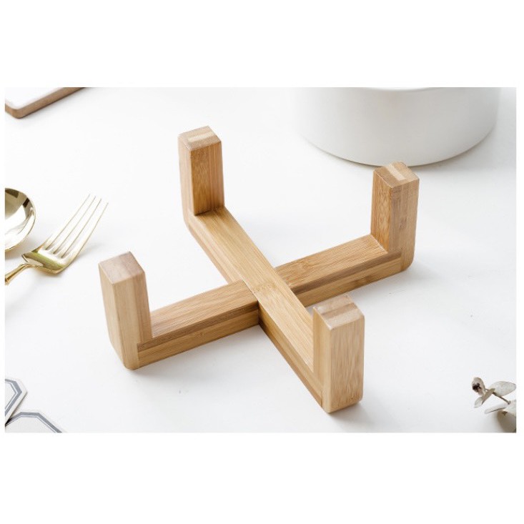 Tô có kệ gỗ đi kèm giúp chống nóng, kệ hình chữ thập có phần bo lên trên, bạn có thể đặt tô lên thoải mái mà không sợ trơn trượt.
