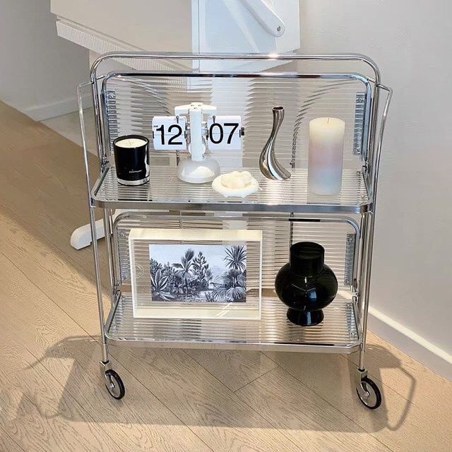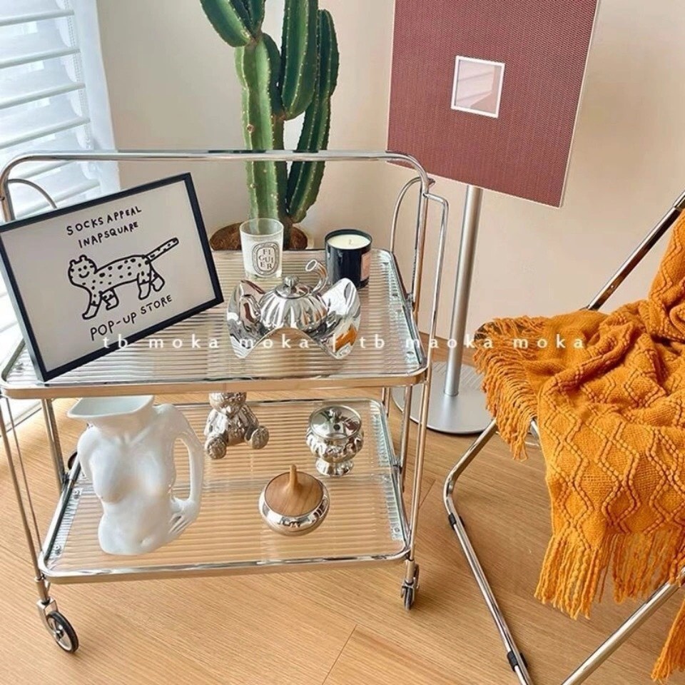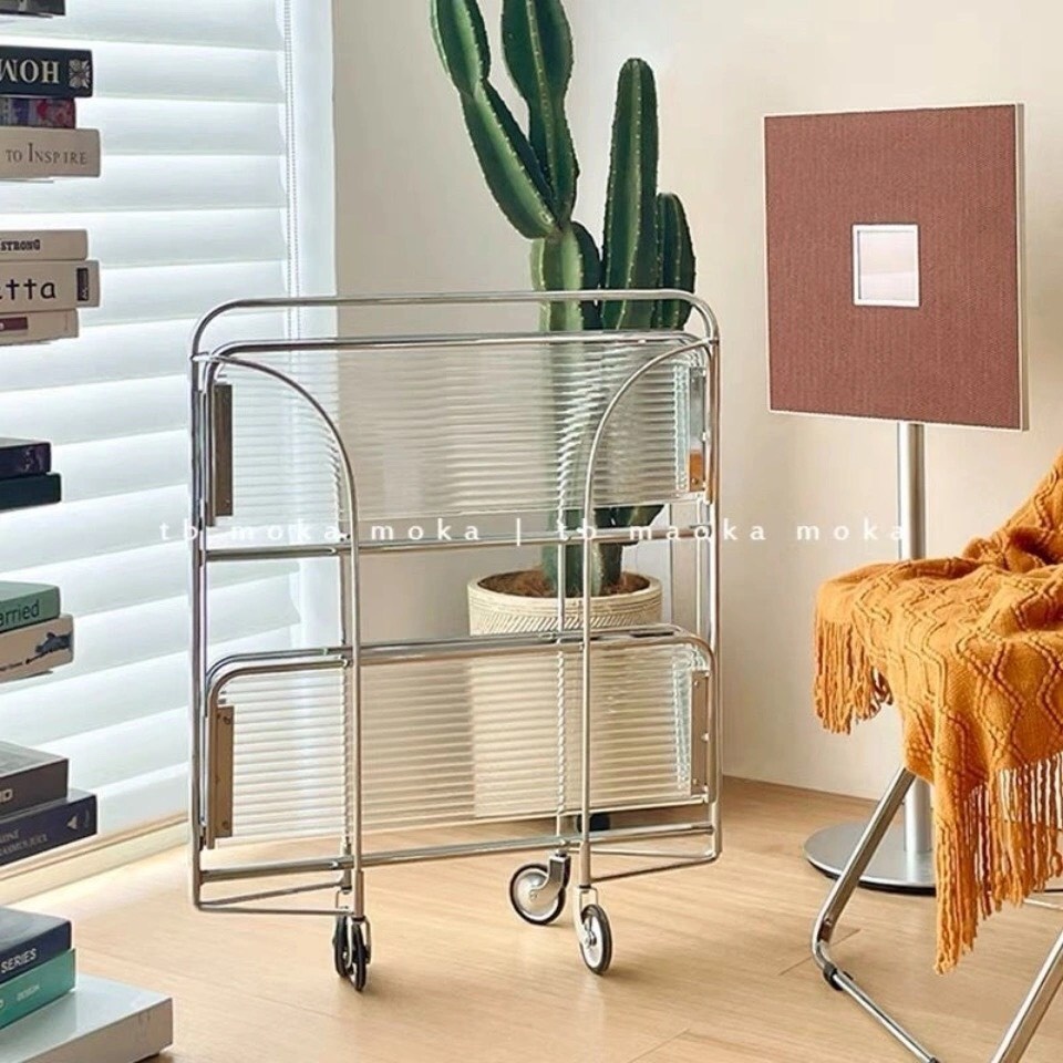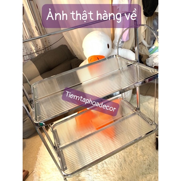 Sẵn_VIDEO TỰ QUAY-_Xe đẩy đựng đồ phong cách Trung Cổ trang trí phòng 3 mức gấp gọn chụp ảnh siêu xinh