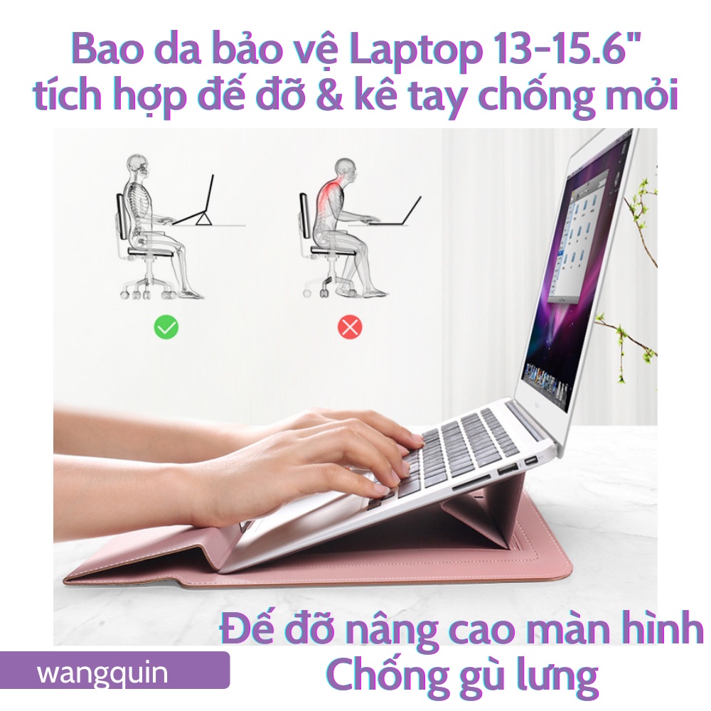 Sẵn VN - SHIPNOW Bao Da Bao Laptop Macbook 13 - 15.6 inch Sang Trọng Cao Cấp Nhiều Tính Năng Tích Hợp Giá Đỡ và Kê Tay----