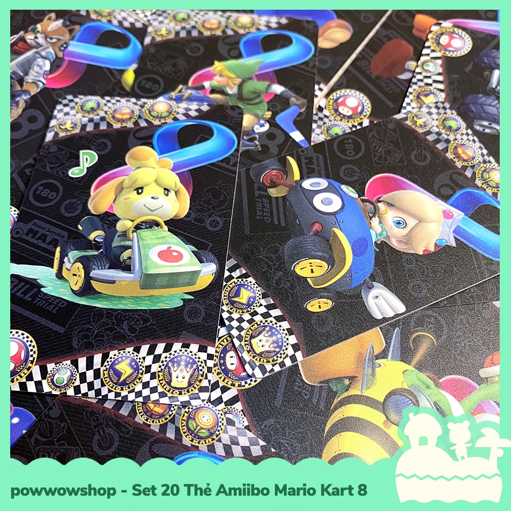 * 20 Thẻ Amiibo Mario Kart 8 sẽ mang lại phần thưởng là các racing suit của nhân vật tương ứng trên thẻ, tổng cộng có 20 racing suit.