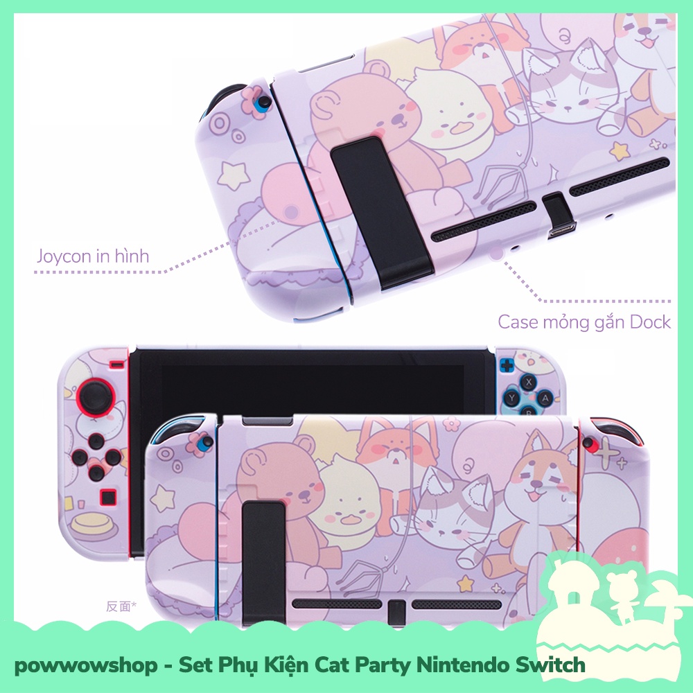 [Sẵn VN - Hỏa Tốc] Set Phụ Kiện Case Ốp, Cường Lực Cho Máy Game Cầm Tay Nintendo Switch Phong Cách Cat Party