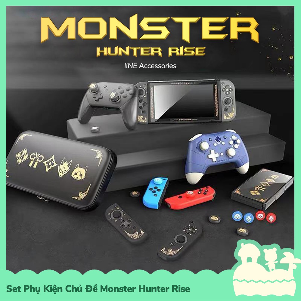 [Sẵn VN] IINE Set Phụ Kiện Túi, Case Ốp, Analog Joycon Cho Máy Game Nintendo Switch Monster Hunter Rise 2