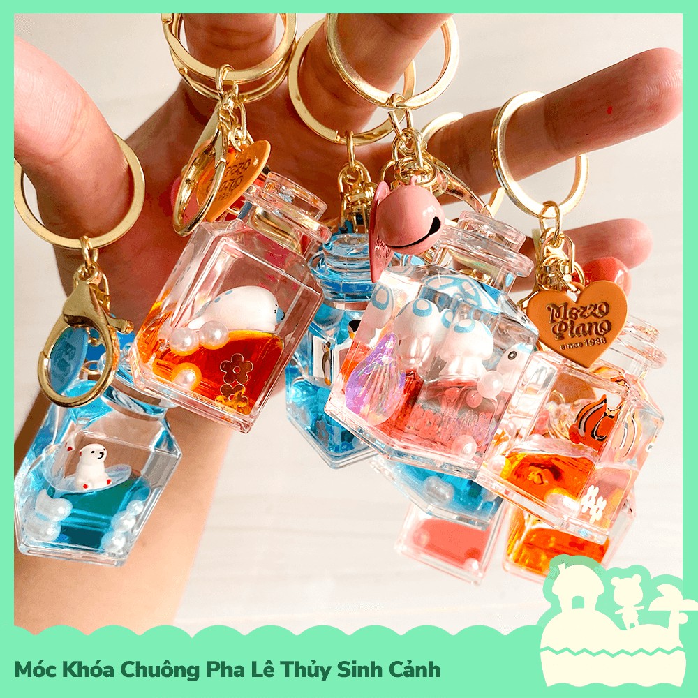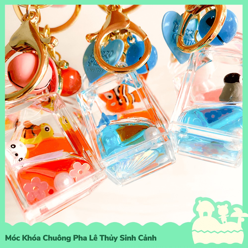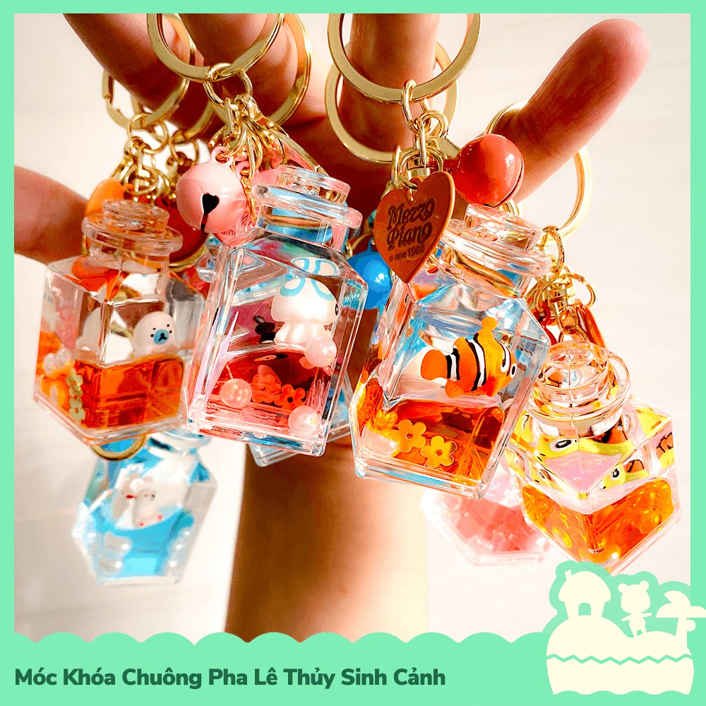 [Sẵn VN] Móc Khóa Chuông Thủy Tinh Pha Lê Lọ Thủy Sinh Cảnh Đa Sắc Gấu, Hải Cẩu, Rùa, Sứa, Nemo, Shark, Chim Cánh Cụt