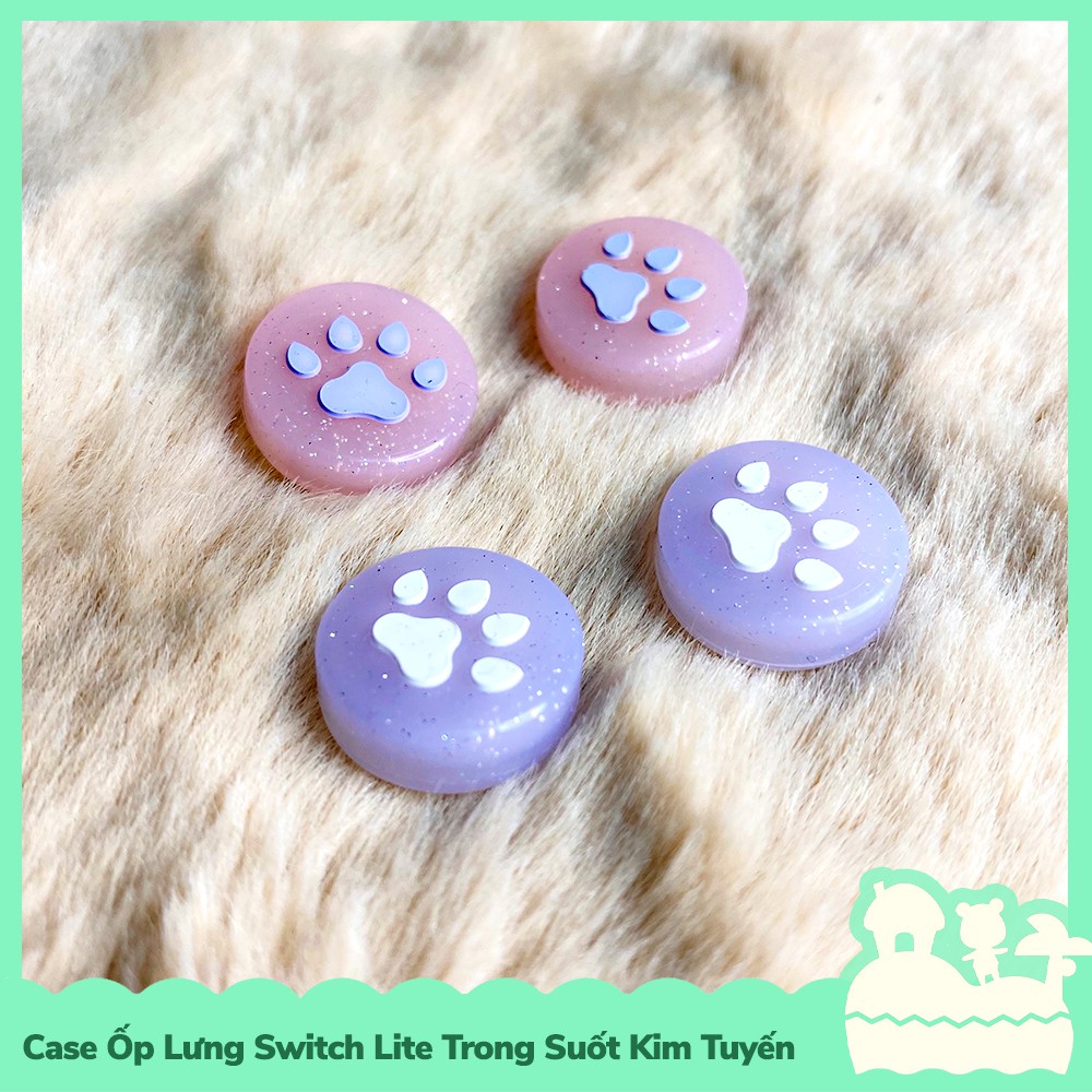 * Sản phẩm bọc nút kim tuyến chân mèo sẽ bán theo set, một bộ gần 4 bọc nút: 2 tím và 2 hồng tím, được gia công trên chất liệu Gel Silica, bọc nút sẽ khá dày và cũng được thêm vào một ít kim tuyến, trông như hình viên kẹo dẻo, nhìn khá ngon mắt, bọc nút có thể sử dụng được cho Nintendo Switch v1, v2 và cả Switch Lite.