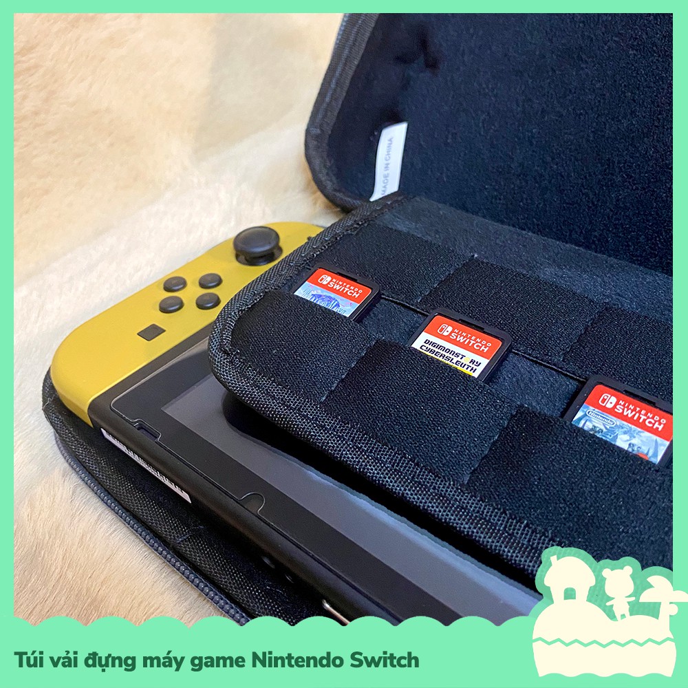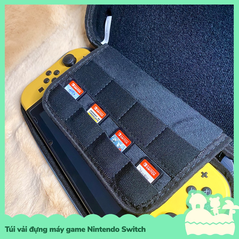 Túi đựng máy game cầm tay cho Nintendo Switch, chất liệu vải nhám chống trầy xước, bám bẩn, không đọng mùi, thoát mồ hôi, bên trong là vải mềm giúp bản vệ máy game của bạn, ngoài ra sản phẩm còn bao gồm lót đệm chứa thẻ game, gồm 8 khoanh êm ái, màu sắc đơn giản tinh tế và tiện dụng.