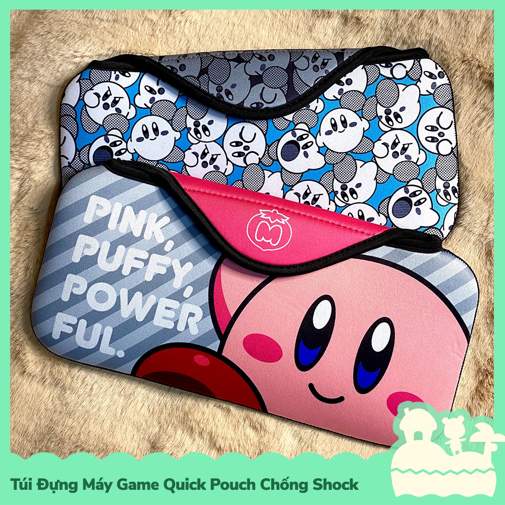 Phụ kiện túi vải chống shock cho máy game cầm tay Nintendo Switch với nhiều mẫu đa dạng, ăn theo những tựa game nổi tiếng của Nintendo như Mario, Splatoon và Kirby, đặc điểm của túi quick pouch là nhỏ gọn và mỏng, được xem như là túi chống shock, để bạn có thể đặc máy nintendo switch vào bên trong và bỏ vào trong túi xách của mình, túi quick pouch sẽ khác so với những túi bảo vệ máy khác vì để bảo đảm những nút cần analog không bị xê dịch khi di chuyển, nên túi quick pouch được thiết kế ôm sát, nên khi bạn bỏ máy game vào túi sẽ có cảm giác hơi chật chội, nhưng đừng lo lắng, với chất liệu vải co dãn, bạn có thể kéo dãn túi để ôm khích máy Nintendo Switch của mình, các bạn có thể xem video của Shop để bỏ máy game vào túi cho chính xác.