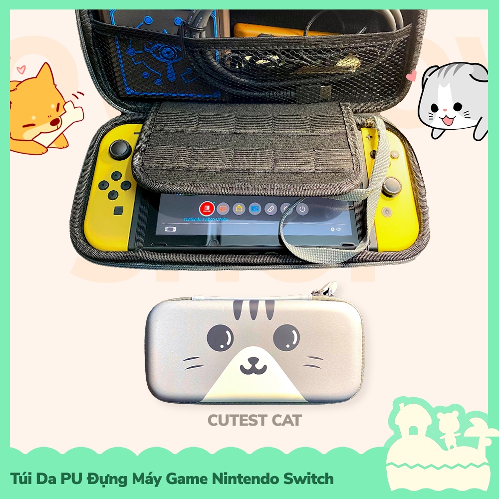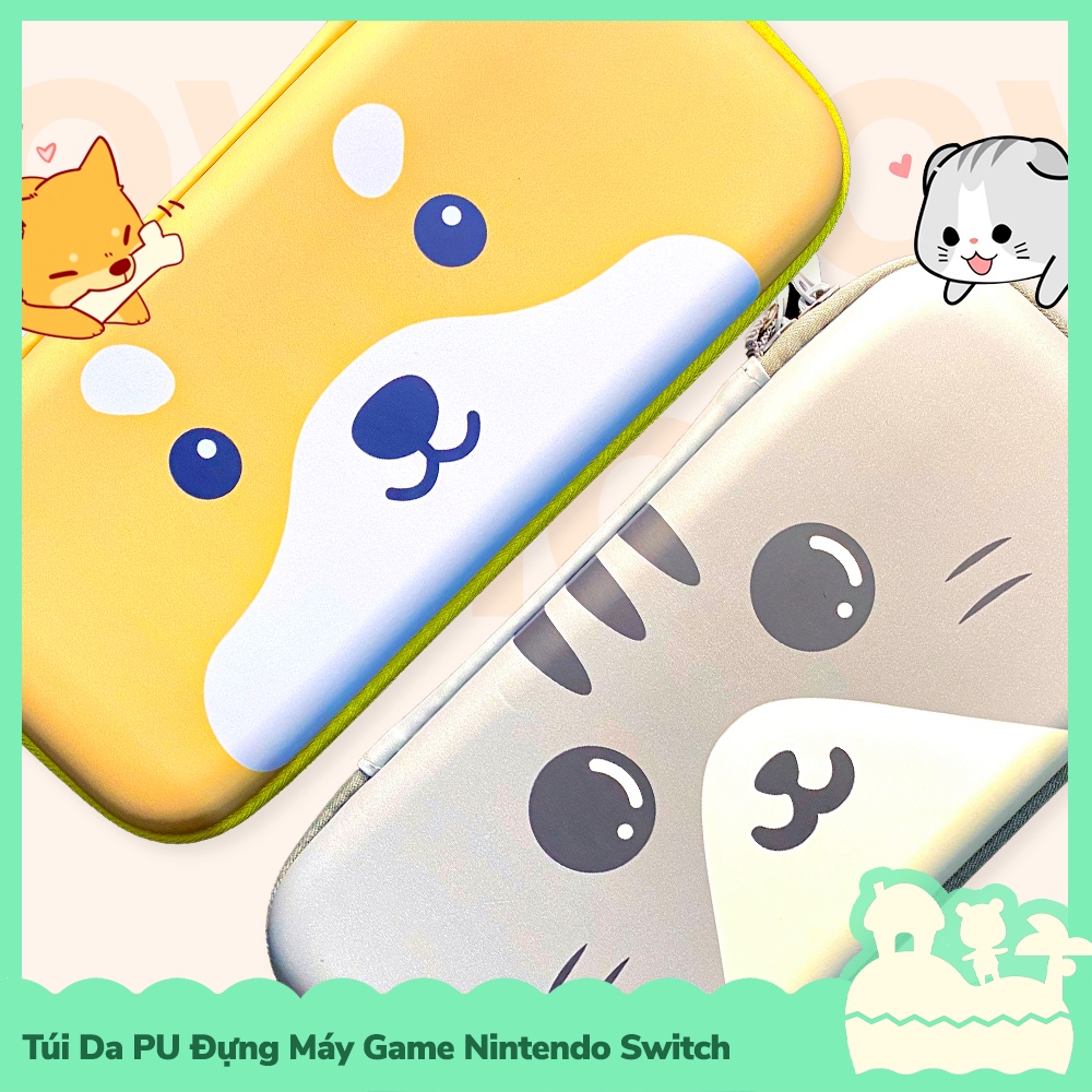 [Sẵn VN - NowShip] Túi Đựng Máy Game Cầm Tay Da PU Nintendo Switch Cute Cat & Dog