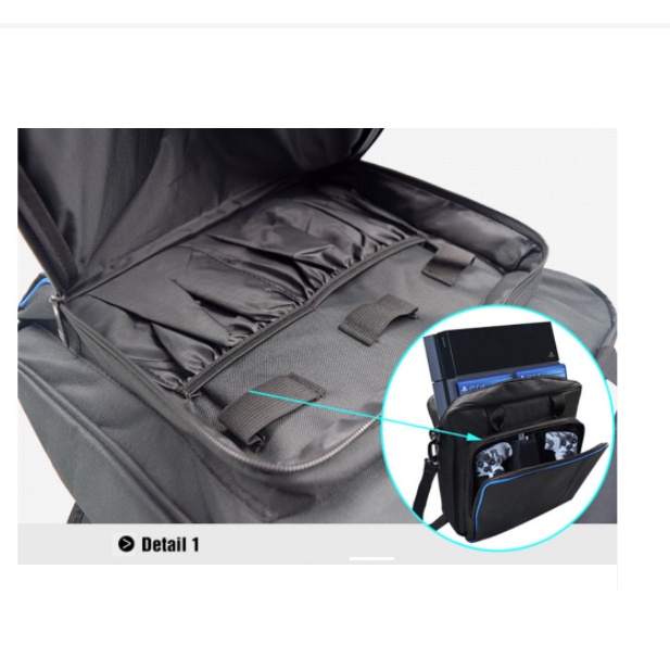 Có chia ngăn riêng đựng body PS4, 2 tay cầm, đĩa game, dây cáp các loại tiện mang đi mang lại.