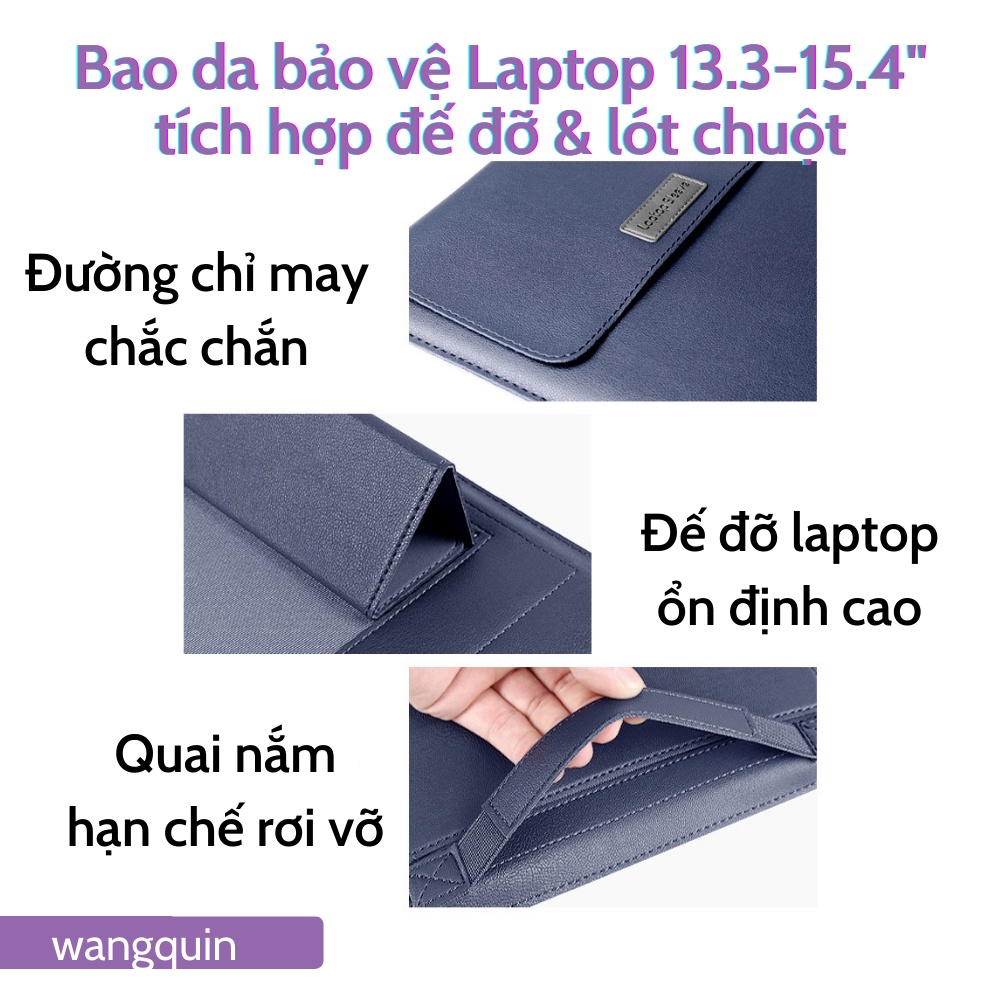 Sẵn VN - SHIPNOW W&Q Bao Da Bao Laptop Macbook 13 - 13.3 - 14 - 15 - 15.6 inch Sang Trọng Cao Cấp Nhiều Tính Năng Tích Hợp Giá Đỡ và Lót Chuột-----