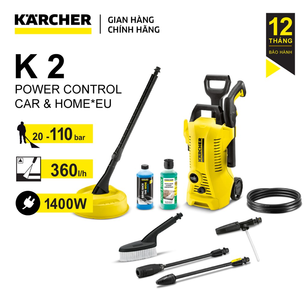 Nhà cửa & Đời sống > Dụng cụ & Thiết bị tiện ích > Dụng cụ > Máy rửa áp lực nước || (Sản xuất Đức) Máy xịt rửa xe Karcher K2 power control car and home áp lực 20-110 bar, dây áp lực 5 métCòn hàng